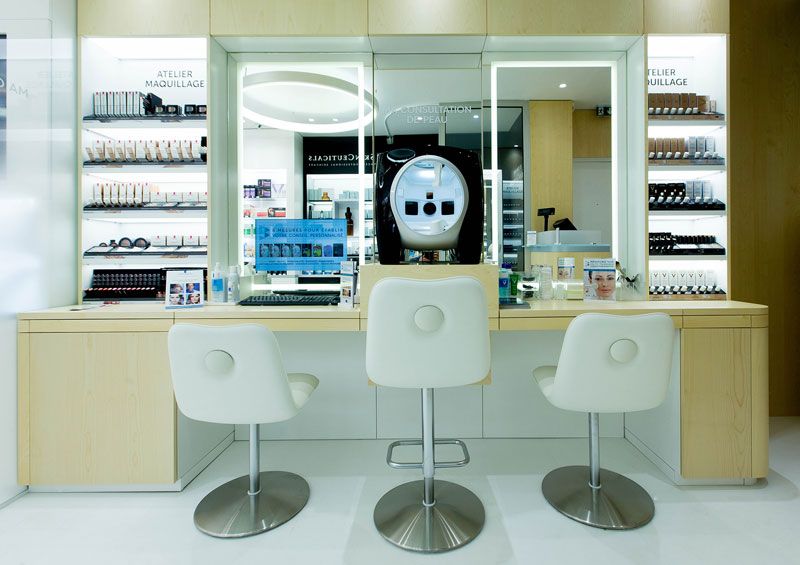 Car tout l'intérêt de la boutique, c'est cette machine de diagnostic, située au fond du magasin et qui va tout analyser. TOUT ! Enfin, au niveau de votre peau en tout cas : si elle est sèche ou pas, si elle a besoin d'être exfoliée ou non, si vous avez des rides profondes, où vous en êtes au niveau des taches de soleil, etc.