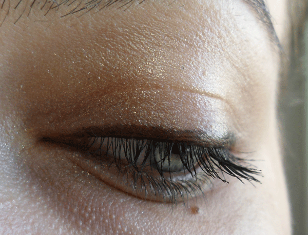 Évidemment, on peut l'appliquer seul sans rien, ou en base, ou ce que je préfère, avec un simple trait d'eye-liner. Mais sans la virgule d'eye-liner. Cela deviendrait trop sophistiqué et ce n'est pas du tout le but de ce make-up. On fait simple, estival et léger.