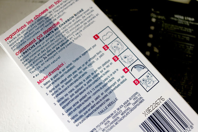 Et pour célébrer cela, j'ai eu envie de tester mon petit pêcher mignon : les patchs purifiants au charbon pour le nez. Oui, vous savez, les patchs qui font des paillassons de points noirs une fois qu'on les enlève. Miam !